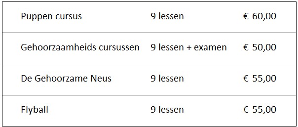 Hieronder vindt u een overzicht van de prijzen van onze cursussen.